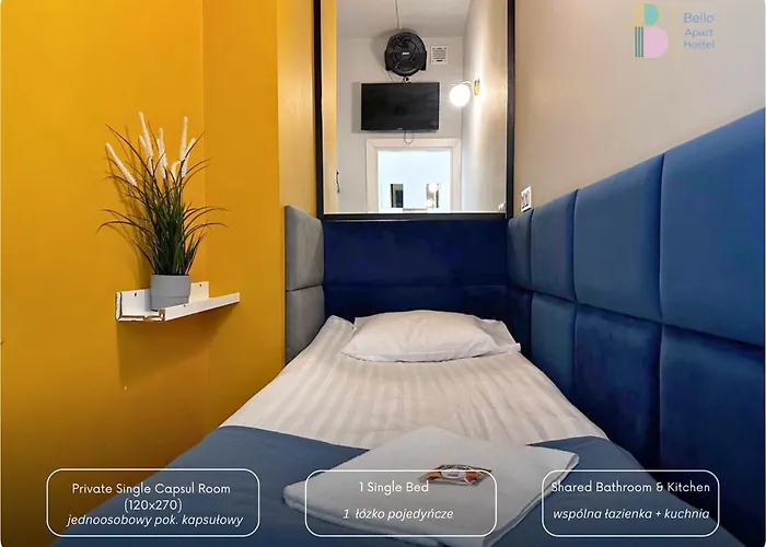 A Kapsuly Bello Aparthostel Varsó hotel Varsó belvárosa körzetben található, és 600 m-re fekszik olyan kulturális látnivalóktól, mint a Foksal Galéria.